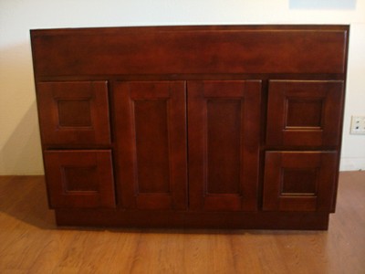 The Bordeaux Shaker bathroom vanity collection offers a very classy look with a rich cherry stain. It comes standard with 6 way adjustable hinges,  dovetailed drawers and undermount full extension soft close drawer glides. This feature provides a nice smooth close when the drawer is closed. With the full overlay shaker style doors and rich stain color the Bordeaux is timeless and elegant.